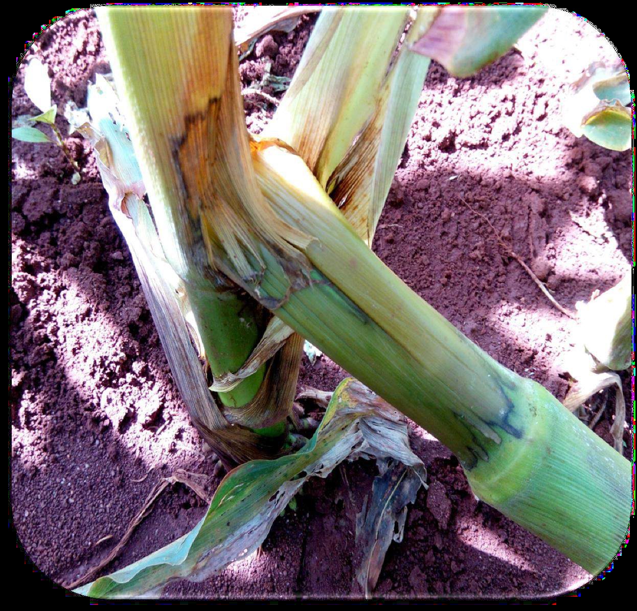 Dalili: 1. Husababisha kuoza kwa pingili moja au zaidi juu ya udongo. Bua huwa jembamba, laini, la kahawia na kujaa maji na tishu zilizooza huwa na harufu nzito 2. mabua kikawaida hupinda na kudondoka, lakini mmea unaweza kubaki wa kijani kwa wiki kadhaa 3. Majani hufa mapema na majani yaliyoathirika yanaweza kuvutwa kiurahisi |