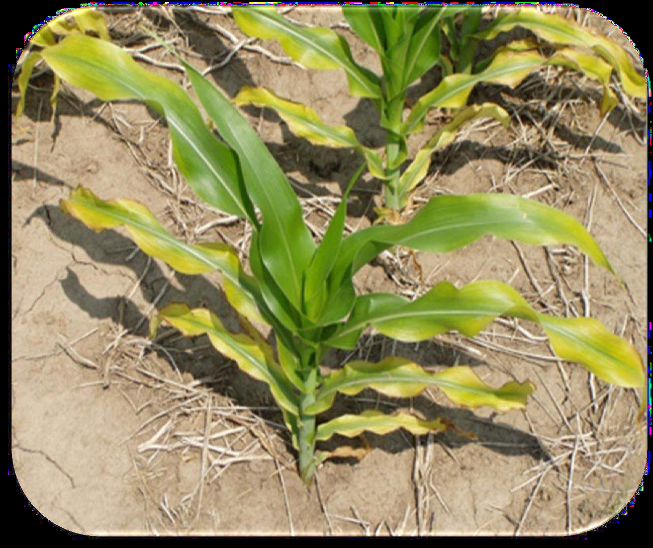 Dalili: 1. Manjano na kufa kwa pembe za majani kwa kuanzia kwenye ncha za majani ya chini 2. Mara nyingi mimea kama mahindi hulala/ hudondoka kwasababu ya kuongezeka kwa uwezekano wa mashina kuoza 3. Masikio ya mahindi (mhindi) yanaweza kuwa madogo, makapi kujaa, mepesi na yenye ncha |